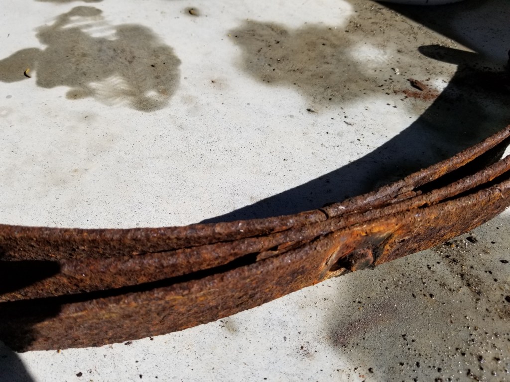 After I started into this project, I realized that one of the leaves of the springs on one side had completely broken off. On the other side, two of the leaves were cracked.